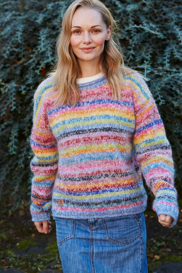 This sweater is super soft and very comfortable. The cheerful colors brighten up any outfit. Definitely a favorite in my wardrobe!